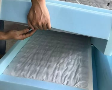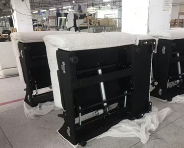 Full Turnkey Solution: We manage everything from frame construction and springing (8-way hand-tied, sinuous springs, or web suspension) to foam carving, fabric cutting, sewing, and final upholstery.